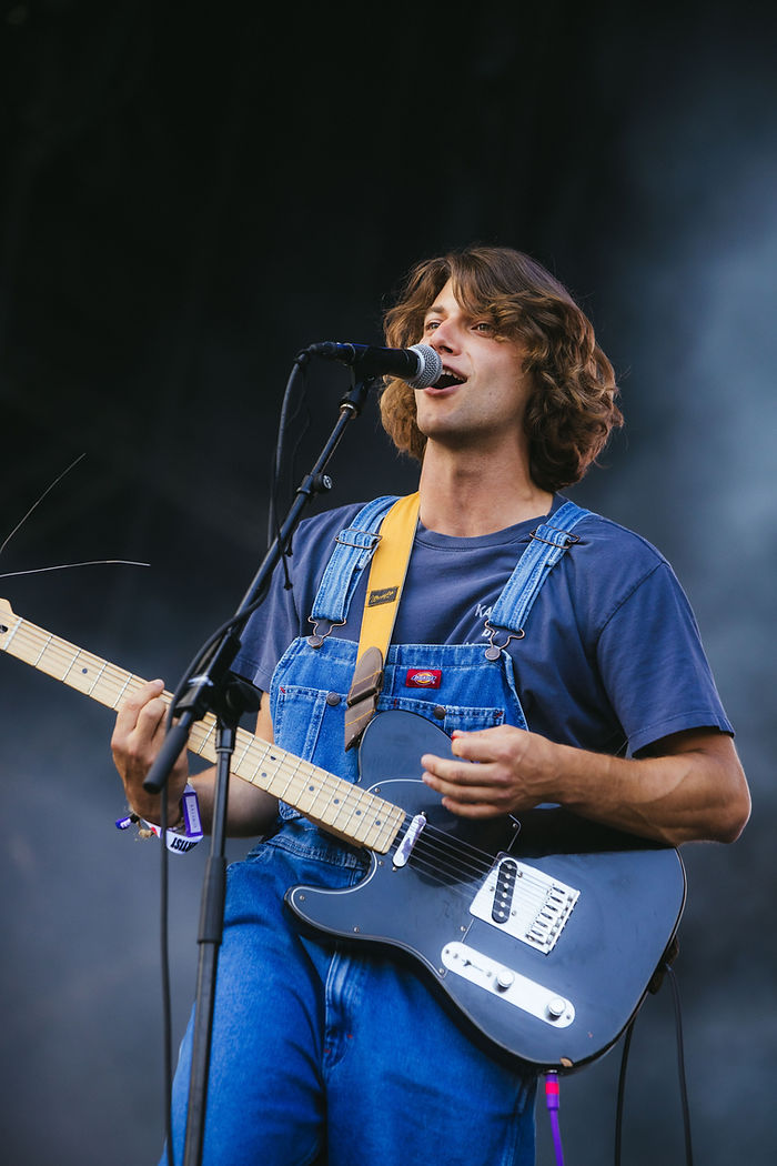 ARCY DRIVE found themselves second in line today on the GoPuff stage, following closely behind Alex Chapman. I made it to the stage 10 minutes before they were set to take the stage, where I found the band still sound checking; glancing up from their pedal boards every moment or so to size up the crowd. I stood close to center, not quite barricade, not quite lawn, but just enough to get caught in the dirt bowl that has surely been getting deeper with each yearly incarnation of the festival. Already exhausted fans and curious onlookers looking to pass the time before their favorite artists’s sets already blocked the entire length of fence separating general admission from the sparsely populated VIP section; the handful of VIP’s each took their turn to gaze longingly into the still multiplying crowd, but unwillingly to leave their spacious premier lawn.