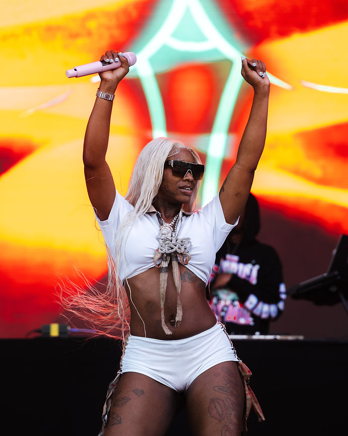 But despite Sexyy Red’s overtly sexual stage presence, she is still a multifaceted performer, capable of emulating a wide range of emotion in her music. Between songs, she took a moment to sentimentalize and dedicate a song to her significant other. “I wanna sing something for my man,” she said, gesturing at her DJ to play “U My Everything.” This was a surprisingly decisive song choice during her set, spurring two starkly contrasting responses. On the one side, garnering massive approval from dedicated fans, and on other, a slew of wild obscenities and disdain towards Sexyy, demanding that she ‘shut up and shake it’ or ‘play something [the audience] knew.’ But those remarks were like drops of water in a barrel to the star, “It’s a barbecue,” she said, sparking applause as “Slob On My Ckat” blared through the stage speakers.