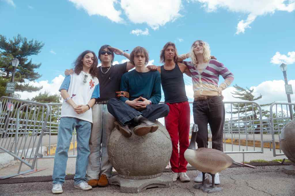 The Geese crowd was probably the most diverse crowd of a non headliner that I’d seen so far, save for Elyanna playing concurrently on the main stage at that moment. There were all types of people in attendance, old, young, big, tall, Black, White, Hispanic, Arabic, you name it. Not to mention some incredibly creative fans; there was young woman standing up front next to me in what I thought was an Eagles or Jets jersey. It was a Geese jersey with the band’s name stitched across the front, with the number 420 and ‘Goosed’ stitched on the name plate on the back. Several of the surrounding fans, myself included, inquired about how to get ahold of one those (Geese was one of the only bands on the bill not to have anything available at the festival merch tent). It turned out that the jerseys were homemade, she revealed that was friends with Dom DiGesu, bassist, and they had designed it together. As if waiting for the conversation cue, DiGesu and the band that could only be recognized as Geese finally strolled on stage.