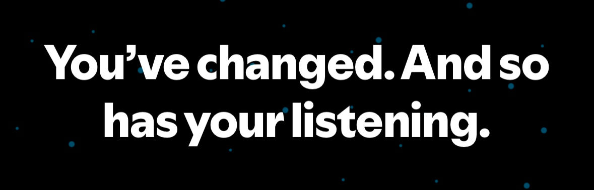 This years Top Genres section was presented by way of the Musical Evolution section, showcasing your growth (or regression) in taste and sound. If Your Musical Evolution included or evolved into: