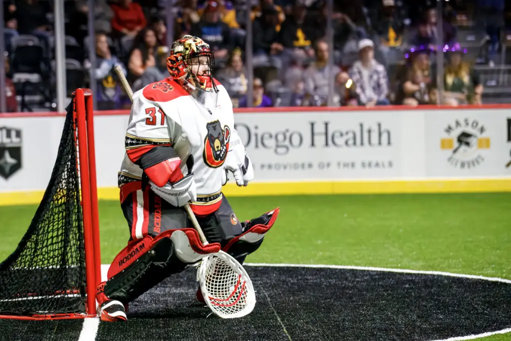 Saturday night’s ESPNU showdown between the Ottawa Black Bears and the San Diego Seals brought viewers the lowest-scoring game of the season so far, and a game now known for the lowest total goals scored, and the lowest score for a winning team in League history. Stand-out performances in net by Christopher Origlieri (SD) and Zach Higgins (OTT), who made 31 and 46 saves respectively, timing in transition and hustle plays were the difference makers for both squads. After ending the first quarter tied, the Seals looked to break away early in the second. Ottawa held them scoreless for the better part of five minutes, before a quick rebound upfield from Eli Gobrecht and a well-timed seal by Jesse Gamble allowed defender Graydon Bradley to put the Seals in the lead. Ottawa would answer the call with three straight goals in the second quarter, one out of the faceoff by specialist Jay Thorimbert, the next in 4-on-4 by Jeff Teat, proving once again that he can’t be left unattended with the ball. Finally, the last of the half was scored by Jacob Dunbar fresh off the bench. Ottawa started the second half up 5-4, but the San Diego captain Wes Berg wasn’t about to let that slide.