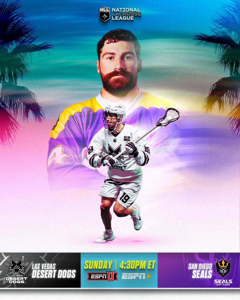 Las Vegas travels to San Diego to take on the Seals in an NLL on ESPN matchup. The action starts Sunday at 4:30pm ET on ESPNU, ESPN+, TSN+, & NLL+.