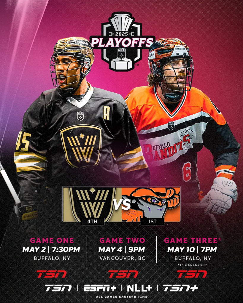 Game 1 of the three-game semifinal series between the No. 4 Vancouver Warriors and the No. 1 Buffalo Bandits kicks off this Friday, May 2, at 7:30 PM ET on TSN, ESPN